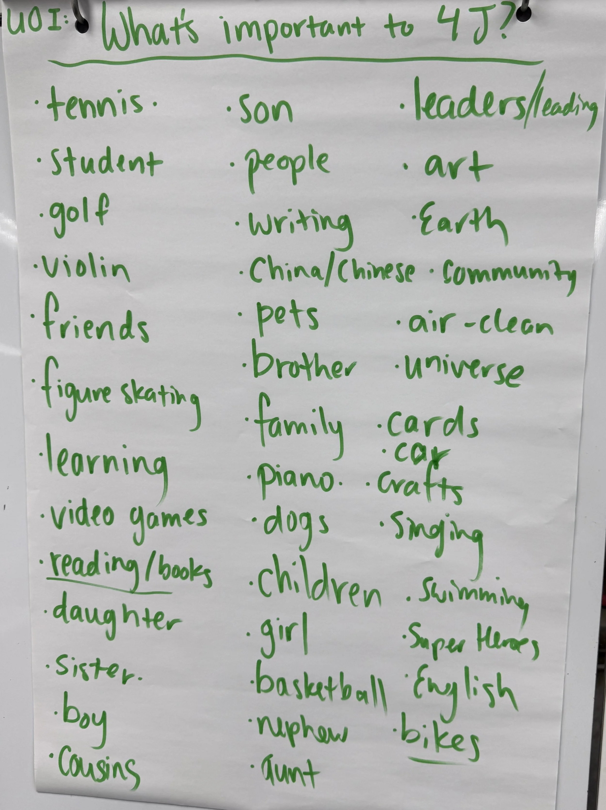 For example, think of the difference between: cats and cat owner. The first student likes cats, that’s great! But does it link to who they are as a person or what they do on the daily. A cat owner has to feed the cat, take care of the cat, has many lived experiences with cats versus a student who loves cats might know from videos, books, a friend’s cat, etc. This is a generalization, of course, but it has a bit more bite to it that students have to think about who they are and what they do. We also do a heart map for writing where it’s just things you like because you like them!