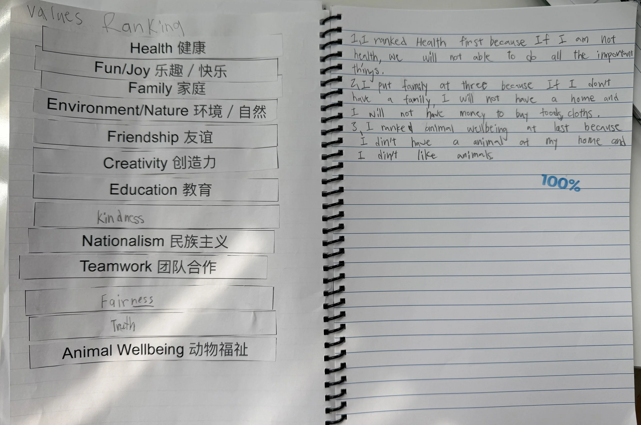 We will then connect these personal values to our family’s values, China’s values, and the school’s values.