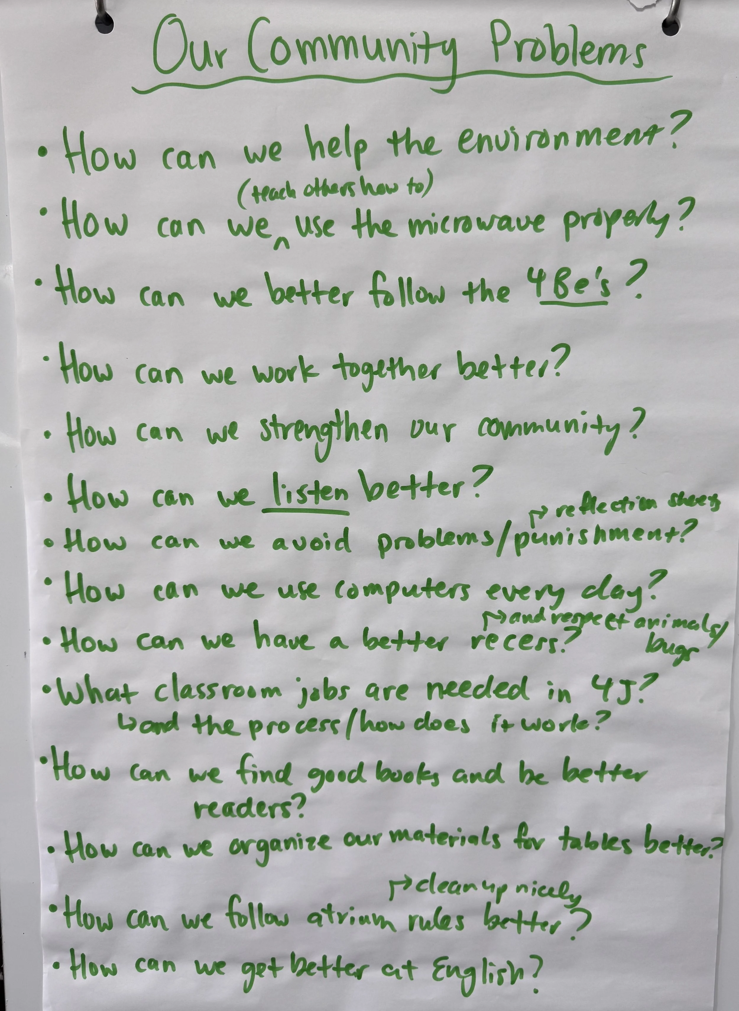 After we had a discussions about what communities do when there are problems: make a decision! You don’t make a whole decision for a community by yourself. The community has to practice strong listening and empathy skills to make sure everyone’s voices are heard.